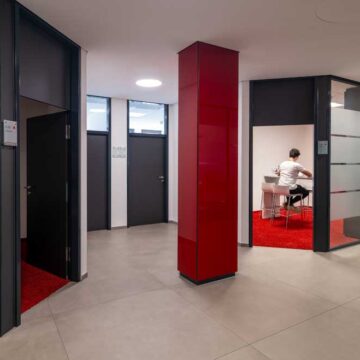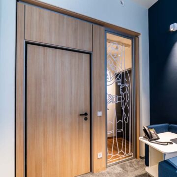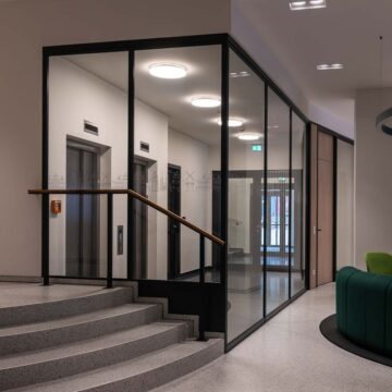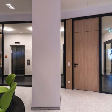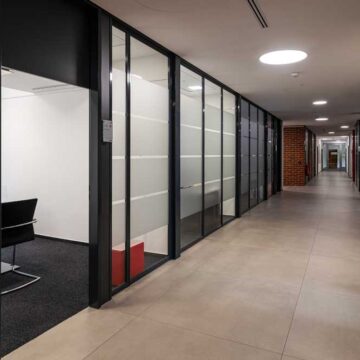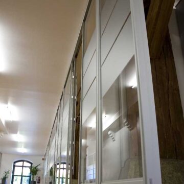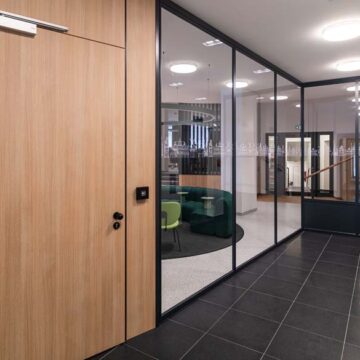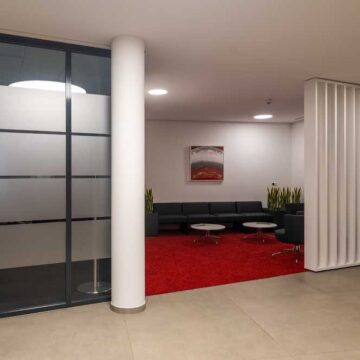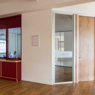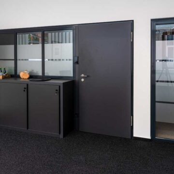 Wir bieten ihnen ein umfangreiches und über Jahre bewährtes Trennwandsystem. Die Schiebetüren können dabei sowohl mit Bodenschiene oder hängend und damit barrierefrei ausgeführt werden. Zudem verfügen wir über Türzargen-Profile und können somit eine Vielzahl von Drehtüren anbieten. Sowohl Holz- als auch Glastüren sind möglich. Diese können bis 3000mm hoch ausgeführt werden oder aber mit Oberlicht konzipiert werden. Oberlichter können mit einem trennenden Profil oder mit Schattenfugen und ebenfalls aus Holz oder Glas ausgeführt werden.